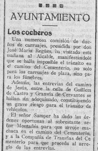 La línea del ferrocarril frenaba su marcha, pero desde la plaza de San Agustín continuaba por Guillen de Castro para alcanzar Blanquerías.