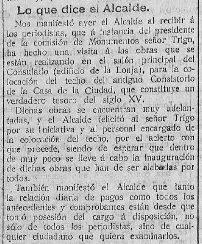Habló de estar dispuesto a contribuir económicamente en aquella gran obra y en sus últimas palabras se atrevió a decir: “Si Valencia, si su Ayuntamiento, nos da el Palacio Municipal, que nos lo dará, si todos trabajamos llenos de entusiasmo, sobre todo la juventud, todas estas asociaciones y el Centro de Cultura Valenciana, podemos hacer una obra magnífica”.